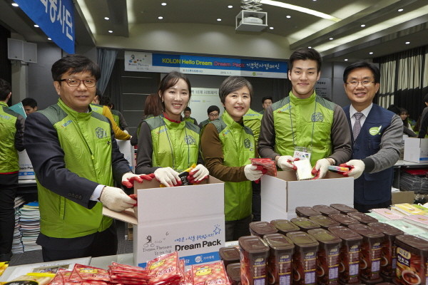 지난 2012년부터 코오롱그룹은 ‘드림팩 기부천사 캠페인’을 통해 저소득층 초·중학생들에게 방한용품과 학용품 등이 담긴 드림팩 키트를 전달해왔다.