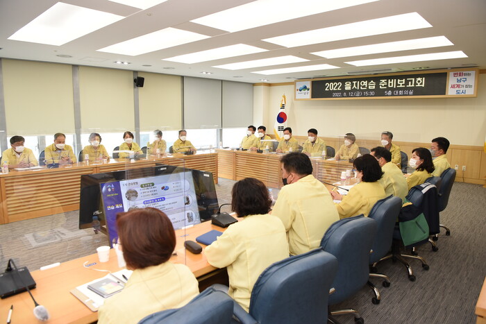 [로컬세계 부산=맹화찬 기자]부산 남구는 지난 12일 구청 대회의실에서 오은택 구청장 주재로 부구청장, 국·과장 등 간부공무원 50여명이 참석한 가운데 2022년 을지연습 준비보고회를 개최했다.