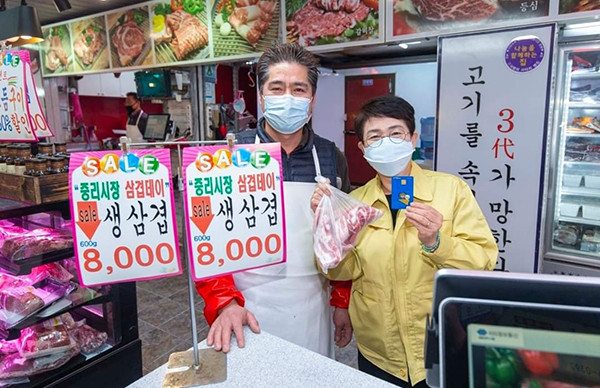대전 대덕구도 3월말까지 매주 금요일에 ‘중리전통시장 삼겹살 DAY‘를 운영, 코로나19로 어려운 전통시장 소비를 촉진 중이다. 국내산 삼겹살 한근을 8000원에 판매하는데, 지역화폐 ‘대덕e로움’으로 결제하면 추첨을 통해 1만원을 환급하는 등 각종 이벤트를 실시하고 있다.