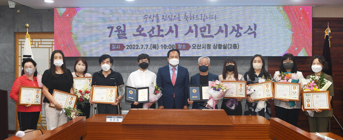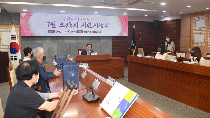[로컬세계=김병민 기자] 오산시(시장 이권재)는 지난 7일 오산시청 상황실에서 2022년 7월 오산시 시민시상식을 개최했다고 전했다.