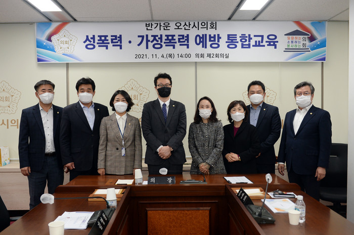[로컬세계 김병민 기자]경기 오산시의회(의장 장인수)는 4일 의회 제2회의실에서 의원과 직원들이 참여한 가운데 ‘성폭력·가정폭력 예방 통합교육’이라는 주제로 의원 아카데미를 개최했다고 밝혔다.