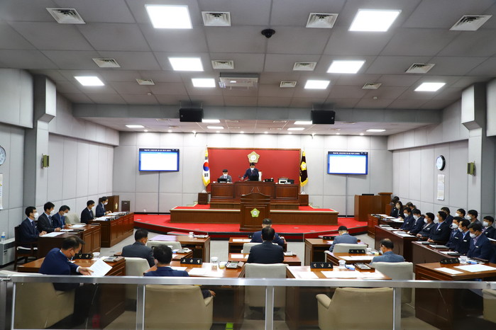 의안심의는 각 상임위원회에서 심사한 '2022년 장애인복지관 민간위탁(재계약) 동의안' 등 8건의 의안과 '주요사업장 현장방문 결과보고서 채택의 건'을 포함해 총 9건의 의안을 처리했다.