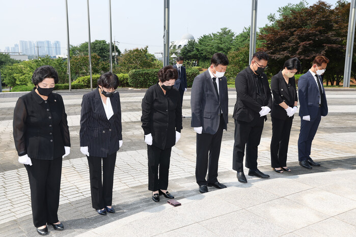 ▲ 고양특례시의회(의장 김영식) 의장단 및 상임위원장들은 7월 11일(월) 덕이동 소재 현충탑 참배를 시작으로 본격적인 의정활동을 시작하였다. 고양시의회 제공 |