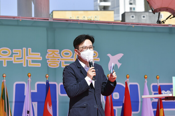 [로컬세계=김병민 기자] 김병수 김포시장은 25일 장기동 인근 한강중앙공원에서 열린 ‘2022년 제15회 김포 세계인 큰잔치’ 행사에 참석했다. 이 자리에서 김병수 시장은 ‘다양성과 포용의 김포’를 강조하며 행사 참석자들을 격려했다.