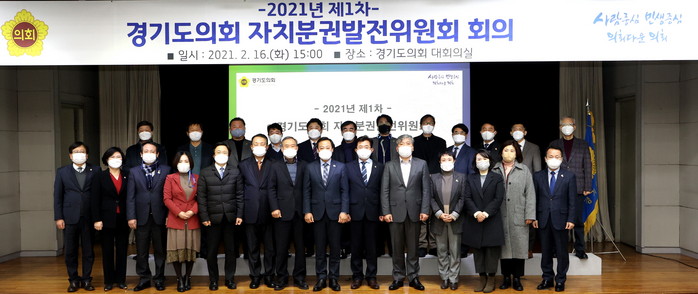 [로컬세계 고기훈 기자]장현국 경기도의회 의장(더민주, 수원7)이 16일 오후 의회 대회의실에서 ‘2021년 제1차 자치분권발전위원회 회의’를 개최하고, 지방자치법 개정에 따른 중점 추진과제에 대해 집중적으로 논의했다.