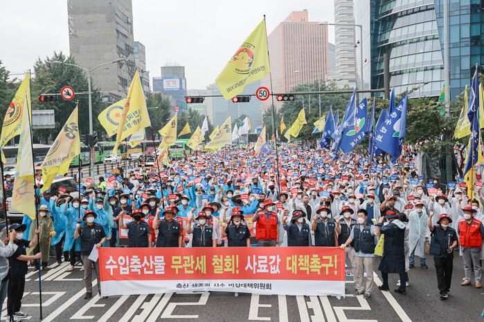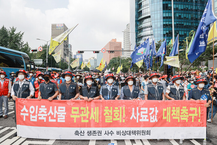 전국한우협회를 필두로 모인 전국의 축산농가는 정부의 수입 축산물 무관세 정책을 규탄하고 사룟값 등 농가 물가안정 대책을 촉구했다.
