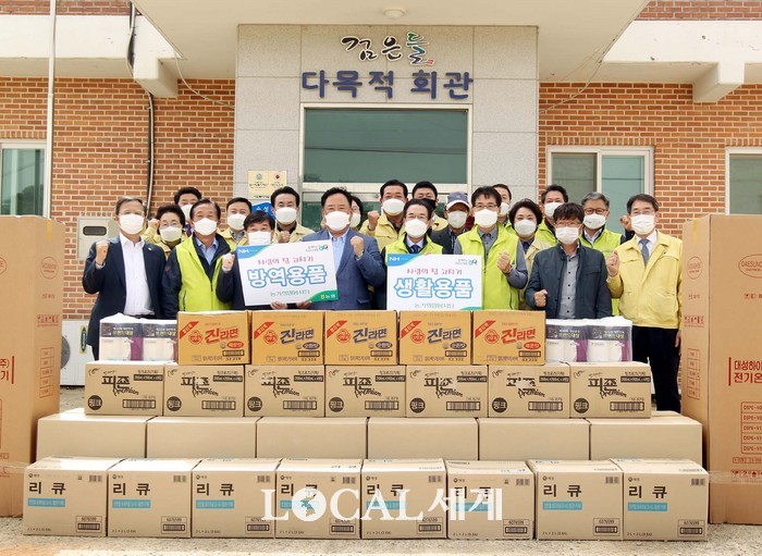 ▲ 이성희 농협중앙회장(사진 앞줄 왼쪽에서 다섯번째)은 7일 '사랑의 집 고치기' 봉사활동으로 충남 당진시 순성면 검은들마을을 찾아 마을회관에 가전제품과 생활용품을 전달하였다. (사진 앞줄 왼쪽부터 이계양 충남도의원, 임유수 세종중앙농협 조합장, 최창용 당진시의장, 어기구 국회의원, 이성희 회장, 강도순 순성농협 조합장, 김인상 검은들마을 이장) |