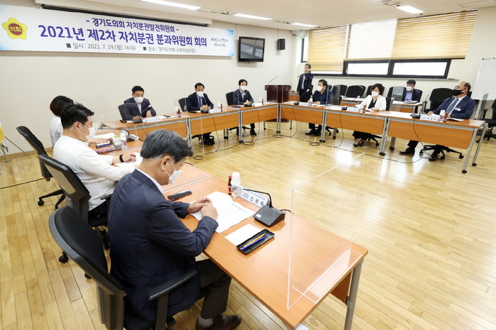 [로컬세계 고기훈 기자]경기도의회 자치분권발전위원회(위원장 장현국)가 19일 오후 의회 소회의실에서 ‘2021년 제2차 자치분권분과 회의’를 개최했다.