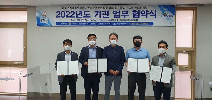 [로컬세계=강상국 기자]경기 화성시노사민정협의회가 27일 ‘노사상생문화 맞춤형 지원’을 위해 관내 주요 단체들과 업무협약을 체결했다.