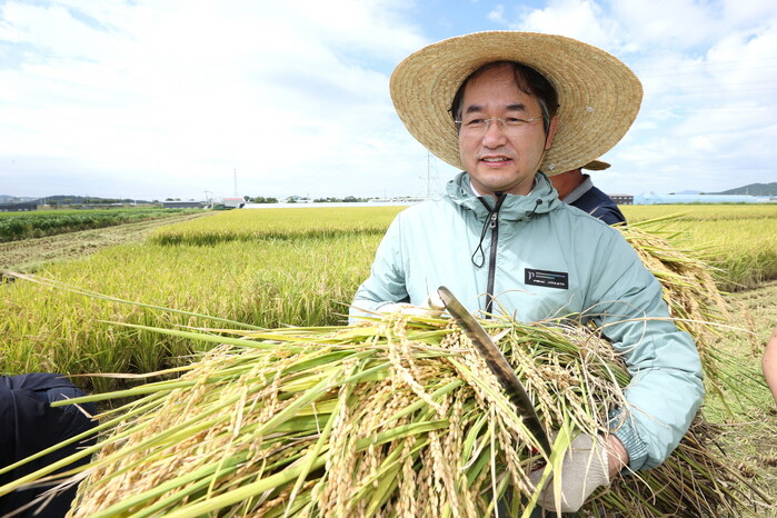 올해의 첫 햇벼 수확을 축하하고 농업인을 격려하기 위해 이동환 고양특례시장과 농협 관계자, 농업인 등 20명이 참석했다.