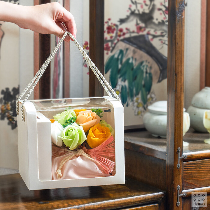 색다른 이벤트를 선사하고 싶다면 ‘한가위 복주머니 용돈 박스’를 추천한다. 비누 꽃바구니와 메시지 카드로 구성된 상품으로 메시지 카드를 당기면 현금이 나오는 ‘반전 이벤트’로 재미를 줄 수 있다. ‘고급 크라프트 쇼핑백’은 메시지를 남길 수 있는 종이택이 달려있어 별도의 카드를 넣지 않아도 되고, ‘반짝이 와인백’은 일반적인 크기의 와인을 담기에 적합한 사이즈로 마련했다.