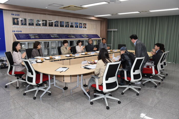 | ▲9일 부산시 북부교육지원청 제2회의실에서 소통과 공감을 위한 ‘열린 교육장실’이 운영되고 있다. 부산시교육청 제공 |