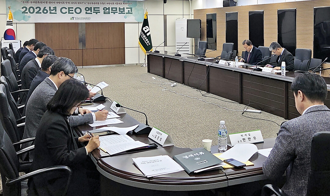 한국농수산식품유통공사(aT) 홍문표 사장은 2일 서울 양재동 aT센터에서 4대 본부별 연두 업무보고를 실시하고, 2025년 사업결과와 2026년 사업계획을 보고받았다.