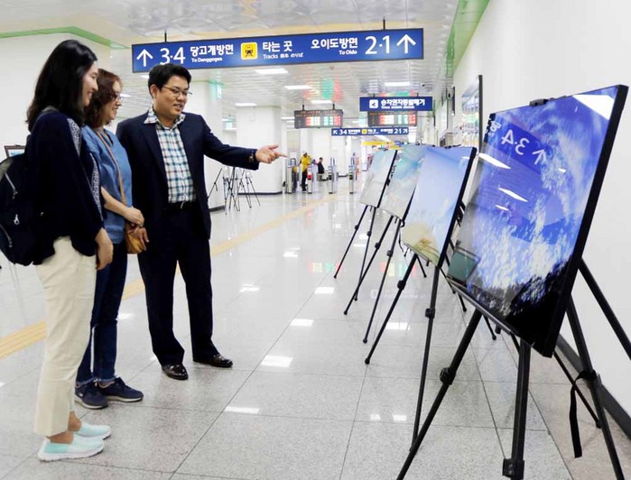 먼저 전철 상록수역 역사 내부에서는 수도권대기환경청이 개최한 ‘하늘사랑 그림 공모전’과 ‘하늘과 사람 사진 공모전’ 수상작을 감상할 수 있는 전시회가 마련됐다. ‘하늘사랑 그림 공모전’은 수도권대기환경청이 어린이‧청소년을 대상으로 진행하는 대표 환경 그림 공모전으로 올해로 10회째를 맞이하고 있다.