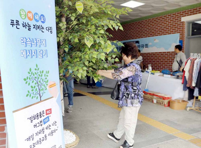 또한 ‘함께 해요! 푸른 하늘 지키는 다짐’ 약속나무를 설치해 시민들이 직접 푸른 하늘을 지키겠다는 다짐을 적어 약속나무에 매다는 이벤트가 마련됐다. 참가한 시민들은 “푸른 하늘을 만들기 위해 매일 대중교통 이용을 일상화하겠습니다” “오늘부터 일회용품 사용하지 않을게요! 더운 여름엔 텀블러와 함께~” 등 대기 환경을 개선하겠다는 자신만의 다짐을 적었다.