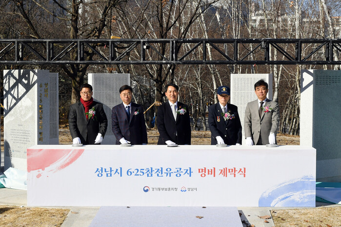 성남시는 이날 오전 11시 분당 중앙공원(역말광장 인근)에서 신상진 성남시장과 박민식 국가보훈처장 등 200여 명이 참석한 가운데 ‘6·25 참전유공자 명비 제막식’을 했다.