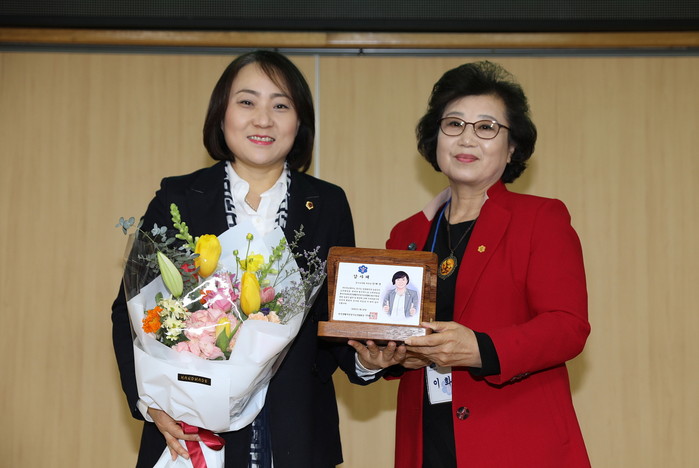 ▲안혜영 경기도의회 부의장, ‘2020 농촌여성리더 역량강화교육 및 총회’서 감사패 수상.(경기도의회 제공) |