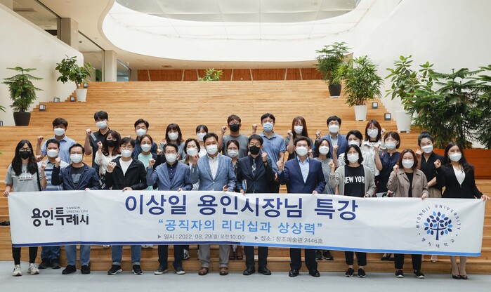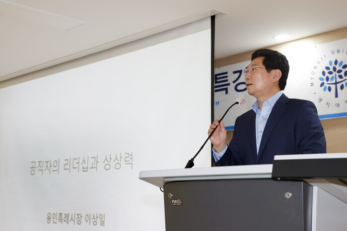용인시 소재 명지대학교 자연캠퍼스 창조예술관에서 ‘공직자의 리더십과 상상력’을 주제로 열린 이 강의는 이 시장이 스스로의 경험과 성찰을 통해서 얻은 공직철학을 전수하는 듯한 열강이었다. 그는 특히 정치인과 공직자는 자신이 제공하는 공공서비스에 대해 책임지는 리더십을 가져야 한다고 강조했다.