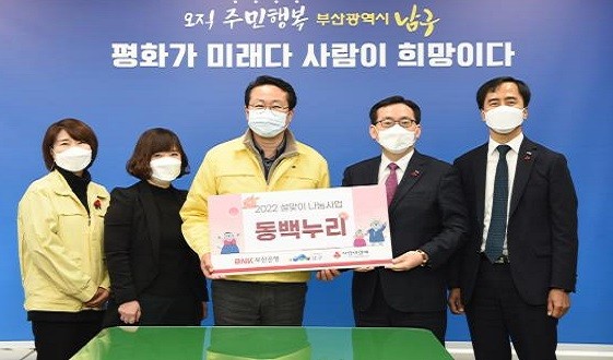 [로컬세계 부산=전상후 기자]BNK금융그룹희망나눔재단(이사장 배규성)은 지난 21일 부산 남구에 2022년 설맞이 나눔사업인 동백누리사업을 통해 이웃돕기 성품으로 온누리상품권 2750만원 상당을 기탁했다고 24일 밝혔다.