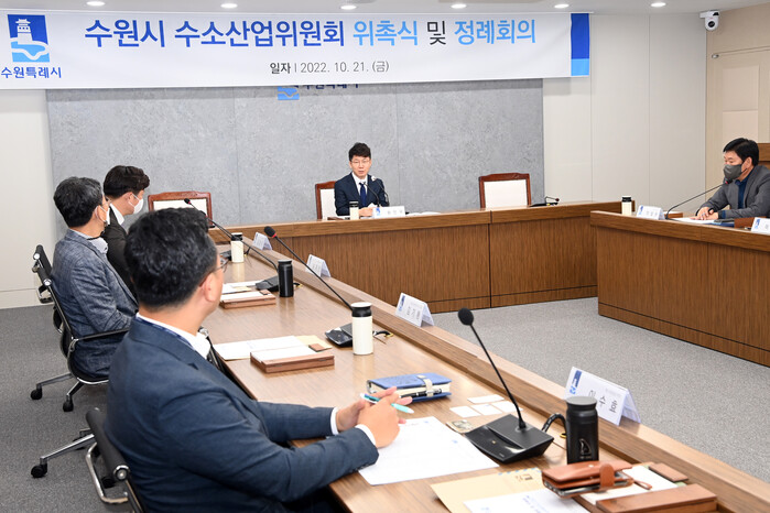수원시는 21일 시청 상황실에서 수원시 수소산업위원회 위촉식·정례회의를 열고, 위원들에게 위촉장을 수여했다. 임기는 2년이다.