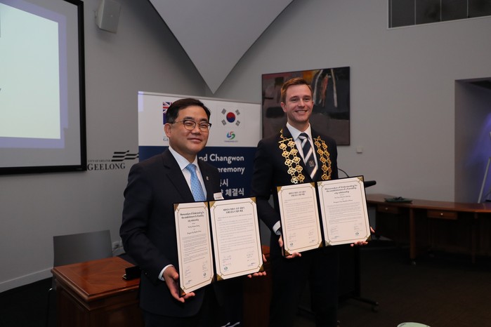 창원시와 호주 질롱시의 협약 체결식에 이어 질롱시 유관기관 방문에서는 빅토리아주 공립 종합대학교인 디킨대학교를 방문했다. 디킨대학교는 호주에서 가장 빠르게 성장하는 연구 대학교 중 하나로 연구수준은 세계 수준 이상이다. 매해 우수논문 발표로 전세계 우수한 대학생들이 몰리는 곳이다. 또한 학교 내 위치한 질롱시 제조위원회(GMC, Geelong Manufacturing Council)를 방문하여 양시간 주요 산업간 교류를 확대하고 협력 방안을 모색하는 시간을 가졌다.