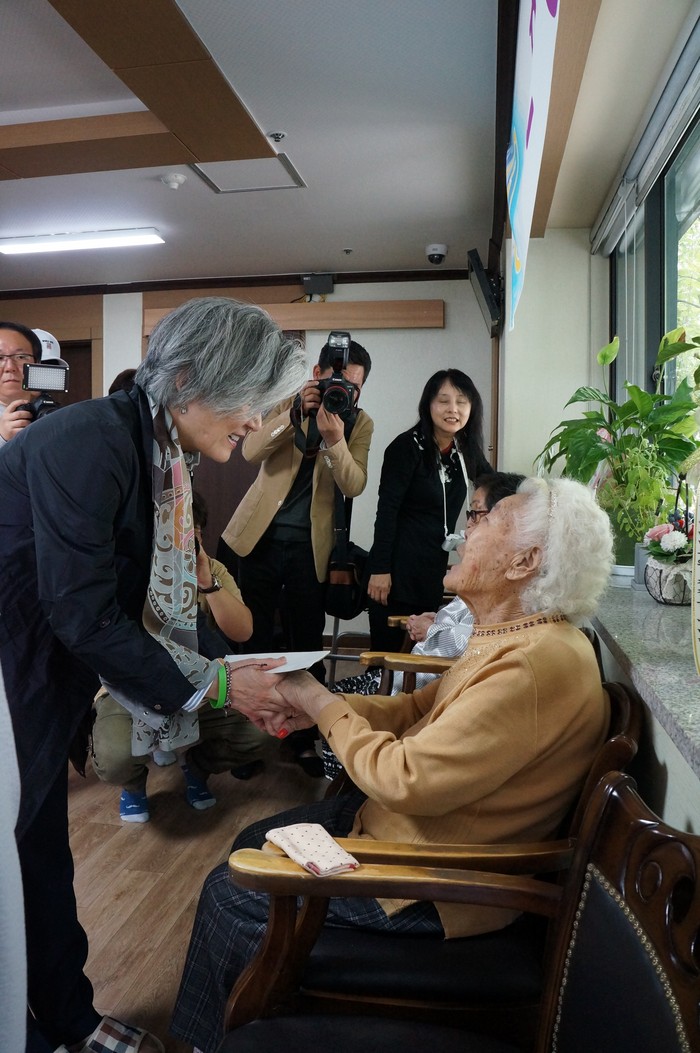 할머니들은 강 장관의 방문에 사의를 표하면서, 강 장관에게 위안부 문제의 올바른 해결을 당부했다.