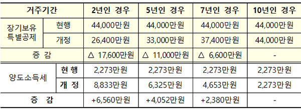-1세대 1주택자 장기보유특별공제에 거주기간 요건을 추가함에 따른 양도소득세부담 변동 사례