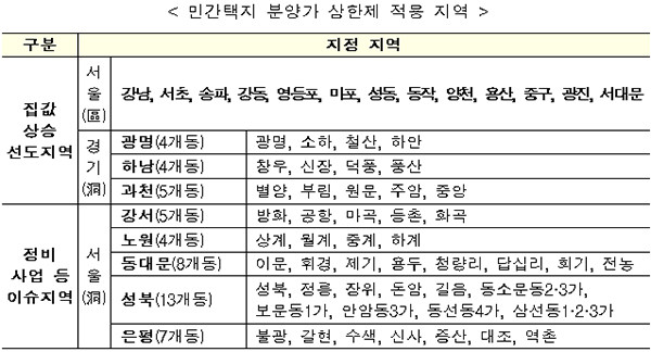 민간택지 분양가 상한제 대상 서울 18개구에 과천·하남·광명 추가