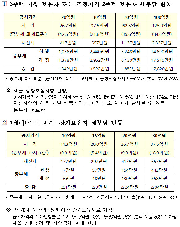 * 2주택자 10%p 중과, 3주택 이상자 20%p 중과