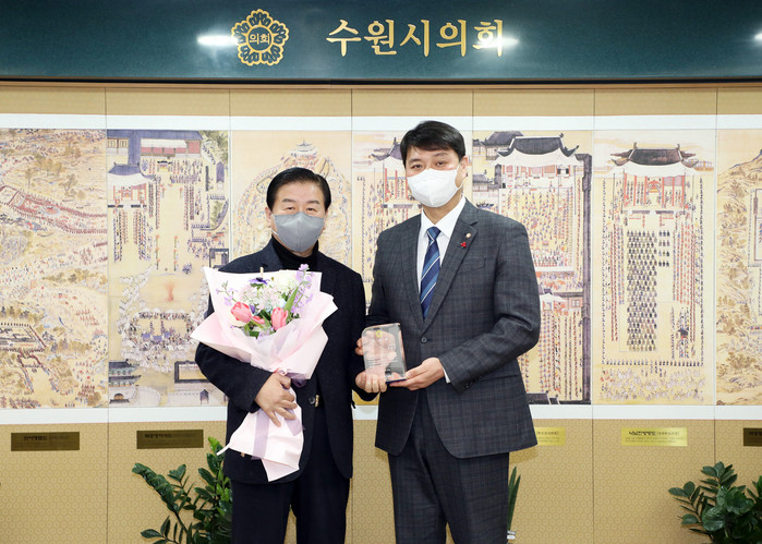 홍종수 의원은 8일 수원시의회 의장실에서 제11회 경기도 시·군의회의장협의회 의정활동 우수의원 표창 전달식’에서 조석환 의장으로부터 표창을 받았다.