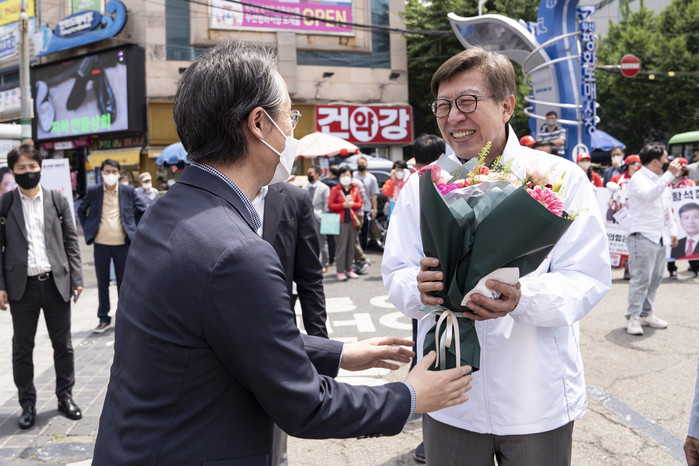 이후 오전 11시30분에는 동구 자유시장 앞에서 집중 유세를 펼쳤다. 동구 유세에는 김진홍 동구청장 후보와 황석칠, 강철호 시의원 후보를 비롯한 구의원 후보들이 대거 참석했다.
