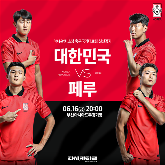 ▲부산시는 대한민국과 페루의 국가대표팀 친선 축구경기를 부산으로 유치했다고 16일 밝혔다. 웹 홍보 포스터. 부산시 제공 |