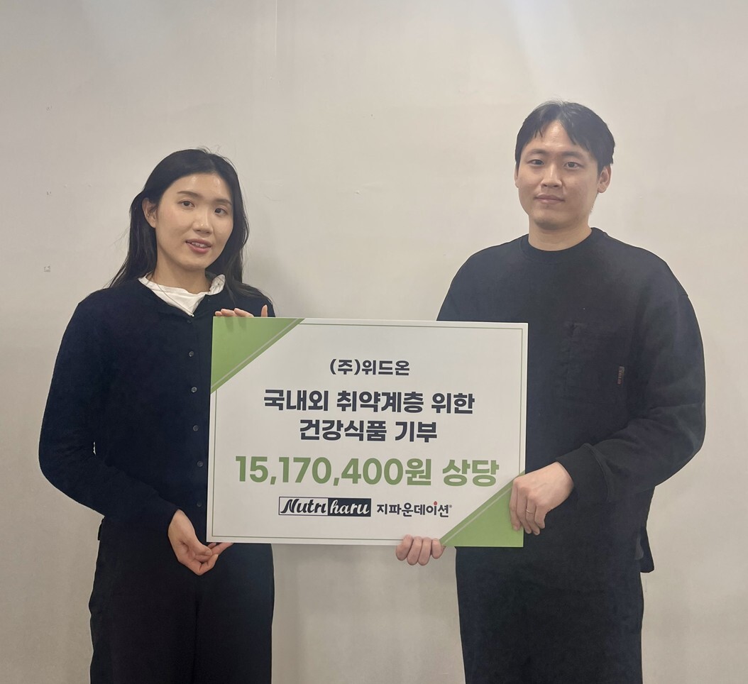 [로컬세계 = 박종순 기자] 건강식품 전문기업 ㈜위드온이 국제개발협력 NGO 지파운데이션에 1500여만원 상당의 건강식품을 기부했다고 14일 밝혔다.