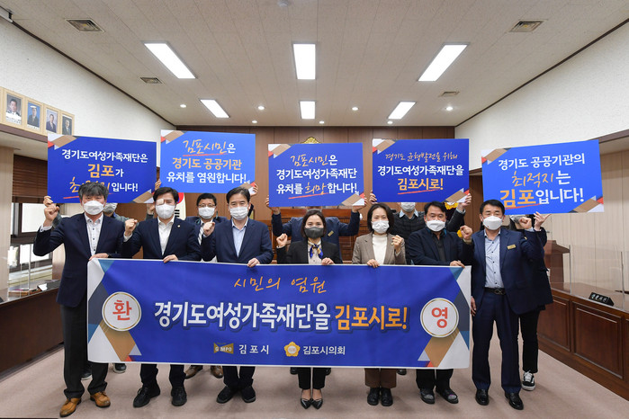 이후 집행기관으로부터 경기도여성가족재단 유치 공모 추진 건을 포함한 6건의 보고를 청취한 의원들은 본회의장으로 자리를 옮겨 준비된 피켓을 들고 제3차 경기도 공공기관 이전 추진에 따른 경기도여성가족재단의 김포시 유치에 목소리를 높였다.