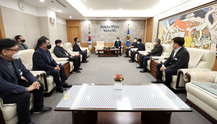 [로컬세계 고기훈 기자]장현국 경기도의회 의장(더민주, 수원7)이 16일 ‘코로나19 생활치료센터’ 근무를 앞둔 의회 사무처 직원들을 격려했다.