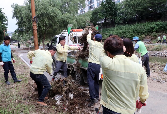 [로컬세계=김병민 기자] 성남시의회(의장 박광순)는 17일 탄천 일대를 찾아 복구 활동을 펼쳤다.