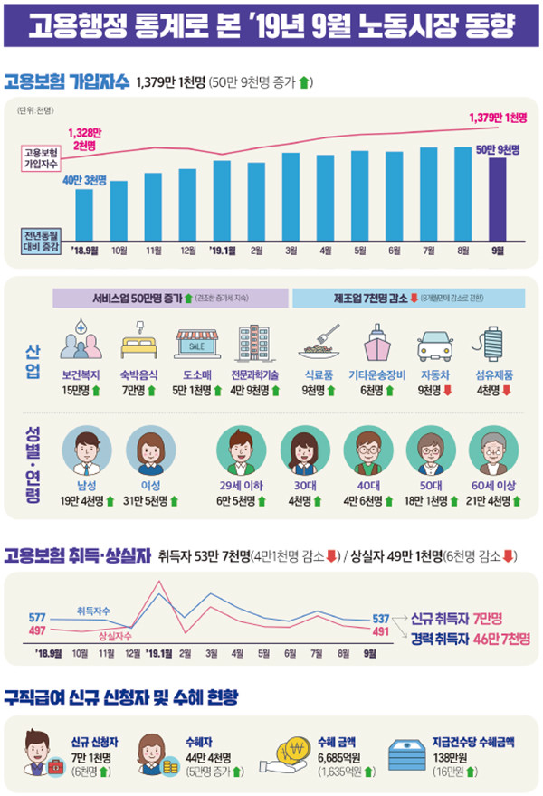 ▲고용행정 통계로 본 2019년 9월 노동시장 동향.(고용노동부 제공) |