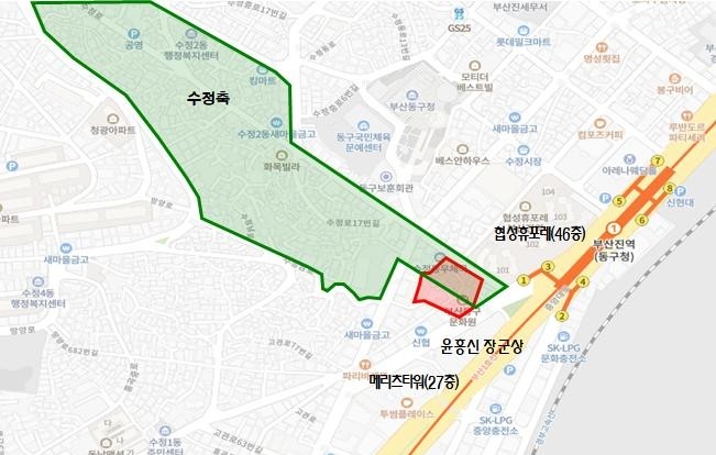 한편, 부산시는 노후 저층 주거지이자 사유지로 된 ‘수정축’을 2030년까지 엑스포빌리지로 조성하기 위해 공공기관이 참여하는 패스트트랙(Fast Track) 방법인 ‘공공주택특별법’에 따른 ‘도심 공공주택 복합사업’을 유력하게 검토하고 있다.