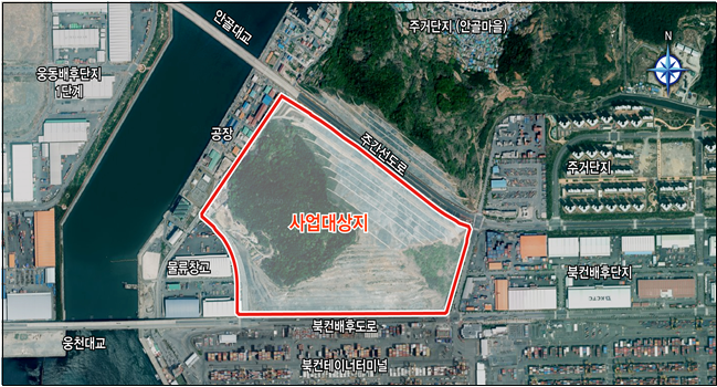 | ▲부산항 북 ,컨, 2단계 항만배후단지 조성사업지 위치도. 부산해양수산청 제공 |