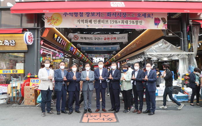 장현국 의장은 이날 오후 화서시장 상인회에서 관계자들을 만나 “코로나19로 추석풍경은 달라졌지만, 한가위를 맞는 풍요로운 마음만은 달라지지 않을 것”이라며 “경기도의회에서 제안해 시행 중인 경기지역화폐 소비지원금이 전통시장 활성화에 도움이 되었으면 하는 바람”이라고 말했다.