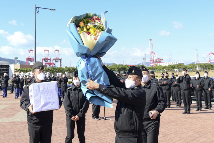 이번 환송식은 코로나19 확산방지와 군 내 유입차단을 위해 장병 가족을 비롯한 외부인은 초청하지 않고 해군 주요 지휘관 및 참모 등 부대 내부인원만 참석한 채 간소하게 진행됐다.
