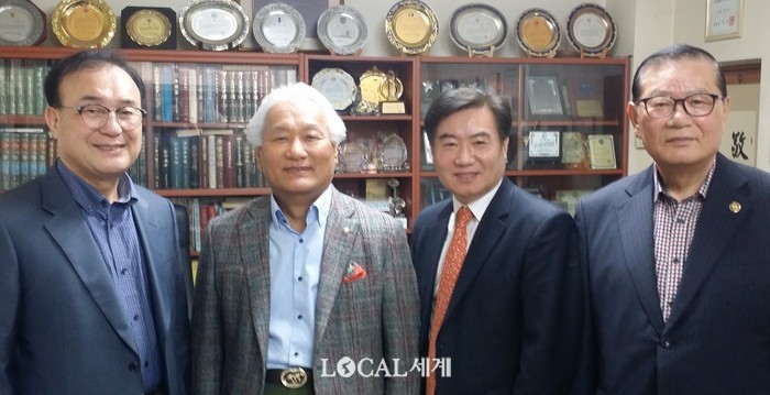 ▲권기한 전 세계일보 중앙회의장, 이상호 덕성한의원장,고용주 로컬세계 대표, 염덕영 전 세계일보 중앙회 감사(왼쪽부터)가 기념촬영하고 있다. 박민 기자. |