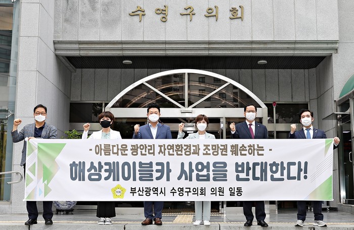 우리 수영구의회는 해상케이블카 사업으로 많은 피해를 보는 수영구민들의 의견을 무시한 채 진행되는 해상케이블카 사업에 반대하며 다음과 같이 결의한다.