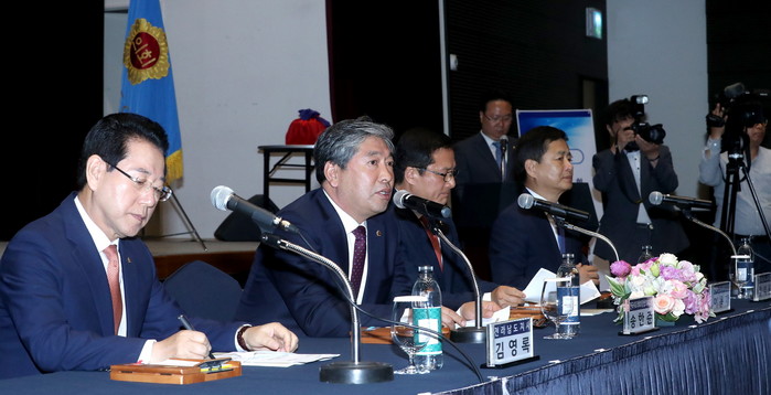 ▲송한준 경기도의회 의장(왼쪽에서 두번째)이 20일 전남도 여수 엠블호텔에서 열린 ‘전국시·도의회의장협의회 2019년 제4차 임시회’에 참석해 발언을 하고 있다.(경기도의회 제공) |