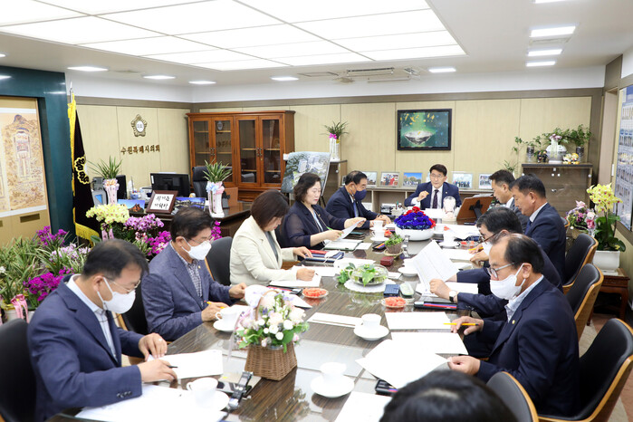 ※ 수원특례시의장단 : 김기정 의장, 이재식 부의장, 강영우 의회운영위원장, 유준숙 기획경제위원장, 조미옥 도시환경위원장, 조문경 문화체육교육위원장, 정영모 복지안전위원장, 이찬용 예산결산특별위원장, 이재형 윤리특별위원장