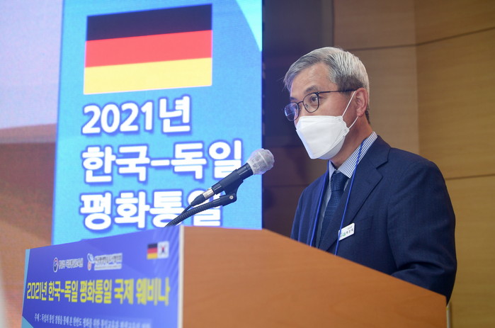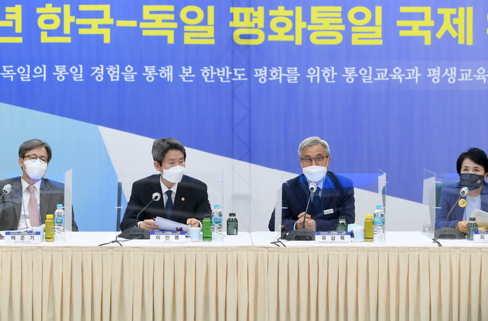'2021 한국-독일 평화·통일 국제 웨비나'는 독일 시민대학 관계자 등과 온라인으로 실시간 연결해 독일 통일 시기였던 1990년대 유럽의 성인학습과 교육에 대해 알아보고, 통일 전후 사회통합과 안정을 위한 동독과 서독의 경험을 중심으로 평생학습 차원에서의 정책과 역할에 대해 생각해보는 시간을 가졌다.