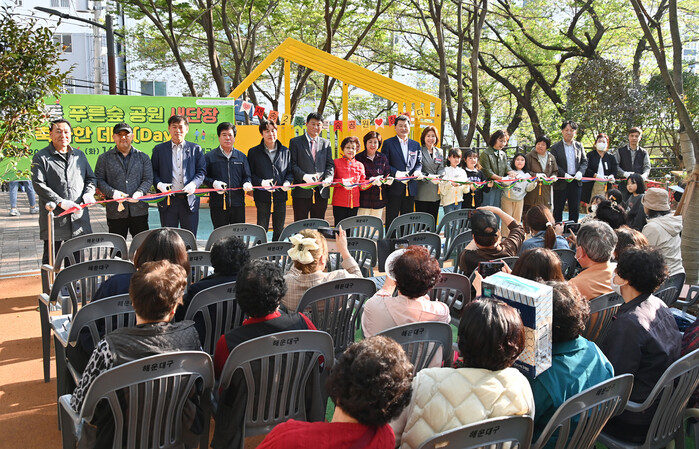 [로컬세계 부산=김의준 기자]부산 해운대구는 16일 재송2동 치안센터 옆 푸른숲공원의 새단장 준공식을 가졌다.
