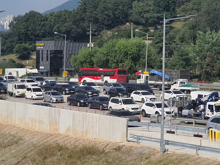 ▲남양주시 화도읍 유일한 관문인 화도IC 인근 정체 모습. 남양주갑 심장수 위원장 사무실 제공 |