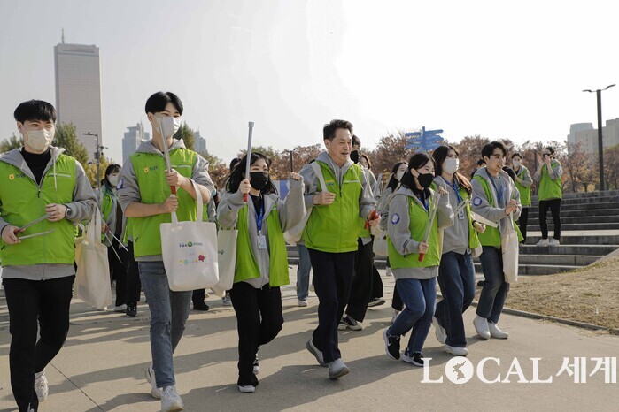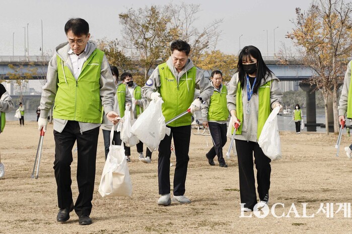 농협(회장 이성희) 상호금융은 지난 11일 서울시 여의도 한강공원 일대에서 ‘한 걸음에 밥 한 숟가락’ 쓰담달리기 플로깅 프로그램을 진행하며 ESG 실천에 나섰다.