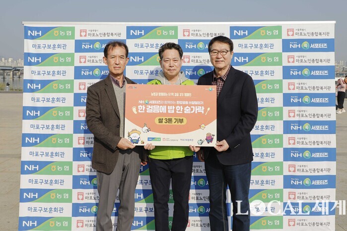 특히 농협은 우리 주변의 소외이웃들에게 온기를 전하고 탄소저감 실천문화 확산을 위한 범농협 캠페인 ‘농협과 함께 걷는 61억 걸음 걷기’에 동참하고자 참가자들의 한 걸음 당 한 숟가락만큼의 우리쌀을 기부하여 행사의 의미를 더했는데, 이날 측정된 걸음수는 개인당 약 4천보로 총 3톤의 쌀이 마포노인종합복지관과 마포보훈회관에 전달되었다.